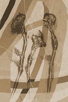 Moderne botanische illustratie in retrostijl. Monotype van een echte plant. Warme aardetinten. Pastel trendy kleuren, organische vormen en lijnen, delicate texturen. Wabi-sabi, Landelijk, Shabby chic, Romantisch, Scandinavisch, Retro, Basic, Design interieurstijl.