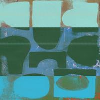 Deze serie abstracte vormen in gedempte kleuren is gemaakt met behulp van monotypetechnieken met acrylverf. Elk werk toont gelaagde vormen - cirkels, ovalen en blokken - gerangschikt in gestructureerde lay-outs. De lijnen zijn zacht en imperfect, met zichtbare texturen van het drukproces. Het kleurenpalet bestaat uit stoffig groenblauw, olijfgroen, roestrood, houtskoolblauw, donker terracotta, warm geel, koraal, zacht paars, neonblauw, zacht beige en gedempt terracotta. Deze afgezwakte tinten geven de kunstwerken een geaarde en natuurlijke uitstraling.