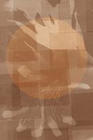 Minimalistische wabi-sabi stijl collage van monotypes en penseelstreken in neutraal gedempt retro geïnspireerd kleurenpalet.
