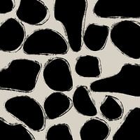 Modern abstract kunstwerk met verschillende organische vormen en lijnen in het zwart met een beige achtergrond. Het vierkante formaat zorgt voor een strakke kadrering van het kunstwerk.