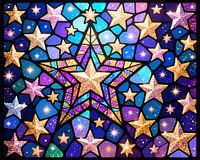 Het beeld ontvouwt een weelderige, bijna overweldigende feestelijkheid: elke centimeter van het tafereel is bedekt met oogverblindende kerstballen en fonkelende sterren, zodat het oog wordt ondergedompeld in een zee van versieringen. Ballen in elke denkbare kleur - diep robijnrood, weelderig dennengroen, warm goud, koel zilver en…
