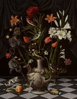 Mijn digitale bewerking van het door Orsola Maddalena Caccia in omstreeks 1635 geschilderde stilleven "Flowers in a Grotesque Vase".