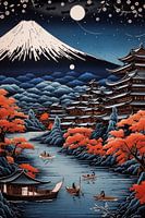 Een kunstwerk dat de levendige en kosmopolitische sfeer van Osaka weergeeft. Neonlichten verlichten de straten vol moderne architectuur en bruisende activiteit, waardoor een futuristisch en dynamisch landschap ontstaat dat de essentie van de stad vastlegt.