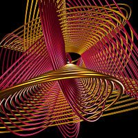 Lissajous figuren in drie dimensies, dansend met elkaar, weergegeven als metalen buizen.