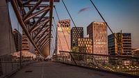 De stalen voetgangersbrug "Akrobaten" over de sporen van het centraal station van de Noorse hoofdstad Oslo bij valavond.