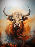 Op het schilderij is een trotse os te zien, getekend met een sketch-techniek en met olieverf gemaakt. De schetsachtige penseelstreken geven het beeld een gevoel van beweging en leven, terwijl de olieverf zorgt voor een rijke en levendige kleurweergave. De os straalt kracht en trots uit, zijn imposante gestalte en fierheid gevangen in een kunstwerk dat de kijker fascineert en ontroert.