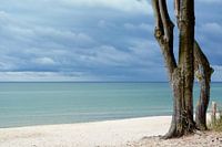 Weststrand aan de Darss aan de Oostzee. Turkooisblauwe zee en fijn wit zandstrand.