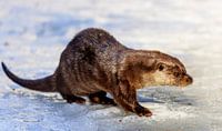 Otter (Lutra lutra) in de sneeuw in het Nationaal Park Beierse Woud in Beieren, Duitsland.