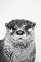 Dit betoverende zwart-wit portret van een otter geeft de speelse aard en nieuwsgierige blik van het dier perfect weer. De fijne details van de dichte vacht en de levendige ogen geven de foto een speciale diepte en charme. Dit kunstwerk is ideaal voor dierenliefhebbers en liefhebbers van fotokunst en geeft je woon- of werkomgeving een warme en uitnodigende uitstraling.