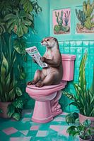 Een grillig motief dat leven en humor brengt in de badkamer: een brutale otter, ontspannend op het roze toilet, met een krant in zijn hand. Omringd door weelderig groen en artistieke plantenafbeeldingen tovert deze charmante afbeelding een glimlach op ieders gezicht en verandert de badkamer in een plek voor creatieve pauzes.