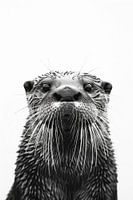 Dit betoverende zwart-wit portret van een otter geeft de speelse aard en nieuwsgierige blik van het dier perfect weer. De fijne details van de dichte vacht en de levendige ogen geven de foto een speciale diepte en charme. Dit kunstwerk is ideaal voor dierenliefhebbers en liefhebbers van fotokunst en geeft je woon- of werkomgeving een warme en uitnodigende uitstraling.