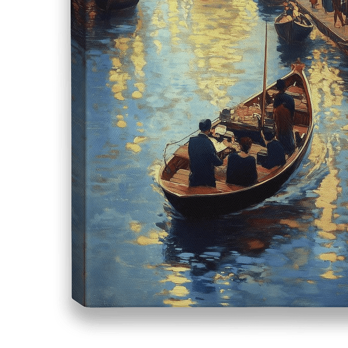 Breng de magie van het oude Amsterdam in huis met dit prachtige schilderij dat het bruisende leven langs de grachten vastlegt. Dit kunstwerk straalt de warmte en charme uit van een zwoele avond in de historische stad, waar zachte lichten weerspiegelen op het water en de gezellige drukte langs de kade tot leven komt. Van de traditionele…