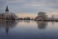 In December 2022 hebben we een paar dagen prachtig winterweer gehad. Deze foto is genomen bij Nes aan de Amstel. Het geeft een schilderachtig gevoel. Het bevroren water van de Amstel en de rijp op de bomen zorgen voor een mooie wintersfeer