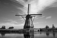 Zomerscène in het beroemde Kinderdijk-kanaal met een windmolen. Oud Nederlands dorp Kinderdijk, UNESCO werelderfgoed. Nederland, Europa.