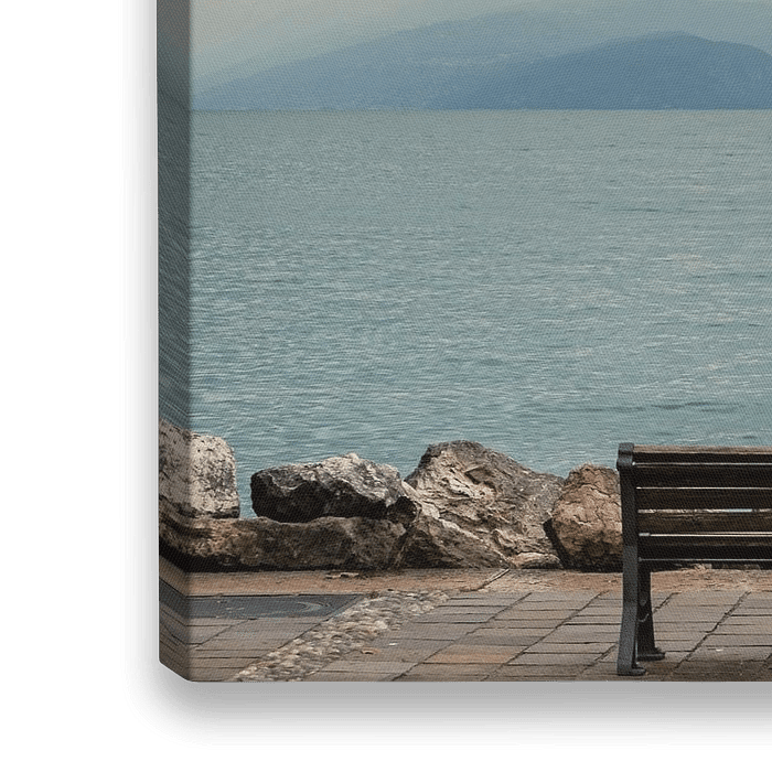 Oud echtpaar zittend op een bankje aan het Gardameer
