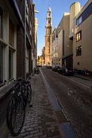 Dit werk toont de Bloemstraat in hartje Jordaan vlakbij de Westerkerk die op de achtergrond het beeld bepaald. Op de voorgrond trekken de dubbel geparkeerde fietsen de aandacht. Stadsvernieuwing is ook hier aan de orde. De linkerzijde toont de soms eeuwenoude huizen en aan de rechterkant is eigentijdse architectuur te zien. Beiden stijlen hebben hun charme! Dit werk is zowel in kleur als in zwart-wit verkrijgbaar.