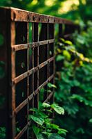 Koop dit schilderij Oud hek met vegetatie van Poster Art Shop als reproductie geprint op canvas, aluminium dibond, (ingelijste) fotoprint, behang en ArtFrame. Voor jou op maat geprint in Fine-Art kwaliteit.