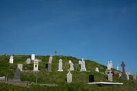 Een oud kerkhof op een stijle heuvel, aan de kust van The Mullet Peninsula in county Mayo, Ierland.