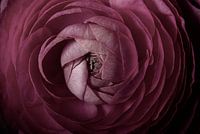 "Oud roze bloem met opengaande blaadjes" is een bewerkte macrofoto van een roze Ranonkel waarbij de blaadjes nog net niet allemaal open zijn gegaan.