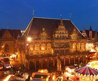 Oud stadhuis, stadhuis, kerstmarkt, schemering, Bremen, Duitsland, Europa
