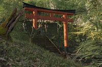 Over ‘Oud verlaten Japans schrijn in het bos met imposante Torii poort’ van Besa Art
