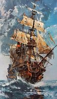 Retro zeilschip illustratie concept ontwerp kunstwerk