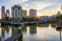 Oude haven Rotterdam tijdens de ondergaande zon. Van de Red Apple tot aan de kubuswoningen.