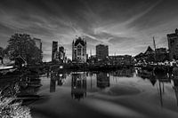 Oude Haven in Rotterdam bij schemering, in zwart en wit van Gea Gaetani d'Aragona