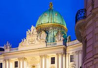 Koepel Michaelertor en de Alte Hofburg op de Michaelerplatz in Wenen in de avond.