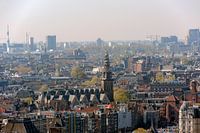 Amsterdam The Netherlands Elevated view of the city seen from Adam Lookout observation deck. Oude Kerk in the centre of the city
