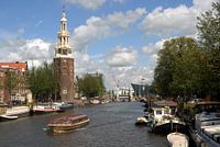 Amsterdam The Netherlands A canalboat passes down the Oudeschans canal past the Montelsbaantoren. A boat trip (rondvaart) on the canals remains one of the most popular tourist attractions in The Netherlands.