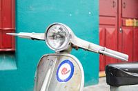 Deze scooter stond geparkeerd in Milaan voor een prachtige muur. De contrastrijke kleuren in deze foto samen met de verweerde textuur van de oude scooter maken dit tot een prachtige plaat