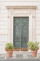 Op deze foto zie je een prachtige oude voordeur in barok stijl in het centrum van de stad Rome in Italië.