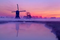 De Oude Weteringmolen in Streefkerk op een mistige morgen net voor zonsopkomst.