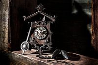 antieke koekoeksklok uit het Zwarte Woud van ca. 120 jaar oud op rustieke houten achtergrond, studio-opname