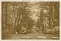 De Witte de Withstraat in Rotterdam bestaat al sinds halverwege de negentiende eeuw maar de gebouwen uit het oostelijk deel van de straat die we hier zien dateren van na de Tweede Wereldoorlog. Ook de auto's doen vermoeden dat we hier niet met een echte vintage ansichtkaart te maken hebben maar met een kunstmatig verouderde digitale foto.