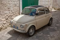 Oude beige Fiat 500 in binennstad van Ostuni, Italië