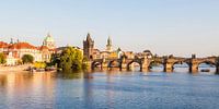 Oude stad, oude stadsbrugentoren en Karelsbrug in Praag, Tsjechische Republiek.