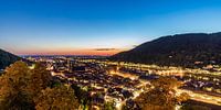 Oude binnenstad, oude brug en de Neckar in Heidelberg bij nacht, Baden-Württemberg, Duitsland.