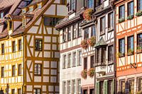 Weißgerbergasse in de oude binnenstad van Sebalder in Neurenberg, Franken, Beieren.