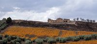 Oude boerderij in Andalusië met op de voorgrond een aspergeveld in herfstkleuren en olijfbomen