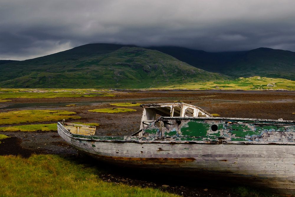 Onderweg vanaf de veerboot naar onze B&B aan de westkant van Mull , kwamen wij deze oude boot tegen.
