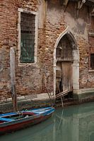 Oude deur en boor in centrum van oude stad Venetie, Italie