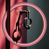 Oud deur beslag op een prachtige rode deur, het gekozen formaat is vierkant zodat de gekleurde toegevoegde abstracte cirkel een fraai geheel wordt met de foto. Deze foto heb ik geschoten in een middeleeuwse kerk en vervolgens digitaal verwerkt tot dit spirituele beeld.