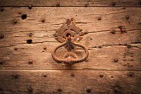 Een fraaie verweerde oude deur met deurklopper ergens is het zuiden van Frankrijk.