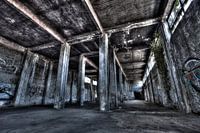 Oude gasfabriek in Maastricht (Nederland). Ondertussen is dit oude gebouw al gesloopt. Het gebouw bestond grotendeels uit beton. In zijn laatste jaren is er veel graffiti op de muren gemaakt. Het is een HDR (High Dynamic Range) foto samengesteld uit 5 foto's waarna tone mapping is toegepast.