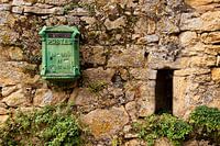 Kwam deze oude Franse brievenbus tegen aan de muur van een vervallen huis in een gehucht in de Dordogne.