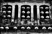Elk detail weerspiegelt Hoi An's unieke culturele mix, waar Chinese, Japanse en Franse invloeden vervlochten zijn in de lijnen van de gebouwen. De afwezigheid van kleur maakt een emotionele lezing van het beeld mogelijk: tussen stilte, herinnering en contemplatie. Het is een duik in het verleden, een moment waarop de stad haar adem lijkt in te houden.