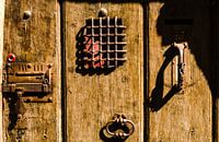 Oude houten deur met slot in de oude stad van Angers Loire Frankrijk