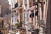 balkons, huizen, Corso Umberto, oude stad, Taormina, Sicilië, Italië
